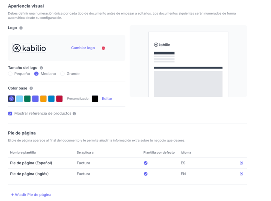 Puedes personalizar algunos parámetros del diseño de las facturas para que reflejen la identidad corporativa: