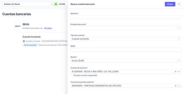 Si no puedes conectar la cuenta bancaria, también puedes crear cuentas bancarias de forma manual.