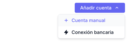 Consejo: Si tu banco está disponible para conexión automática, te recomendamos usar el botón Conectar que aparecerá en la cuenta manual para activar la sincronización automática.