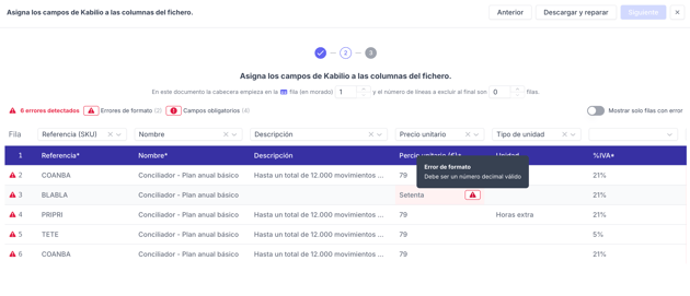 Te recomendamos usar la plantilla de Kabilio para facilitar el proceso. La plantilla incluye todas las columnas necesarias con el formato correcto.