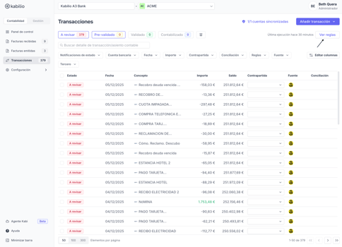 - Auto-validar transacciones: Marca esta opción para que las transacciones pasen directamente a estado "Validada". Si no la marcas, quedarán en "Pre-validada" para que las revises.